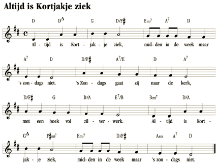 Melodie gelijk aan: 'Altijd is Kortjakje ziek'.