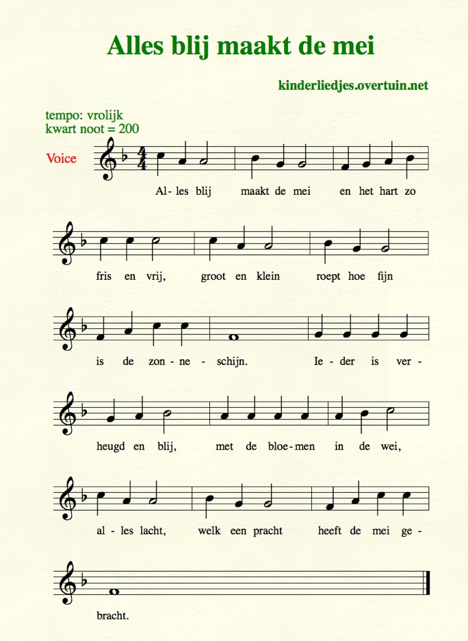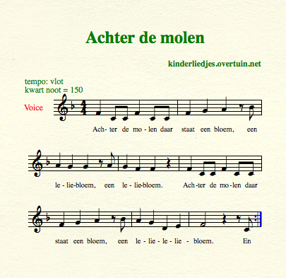 Nederlandse kinderliedjes met muziek, midi en bladmuziek.