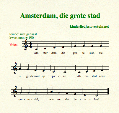 Bekende Nederlandse liedjes met muziek, mp3 en bladmuziek.
