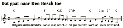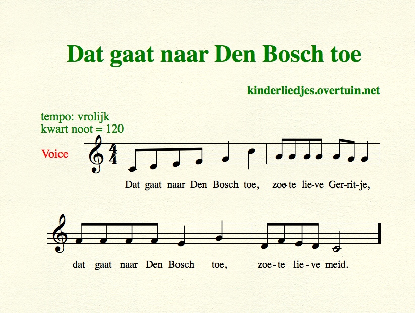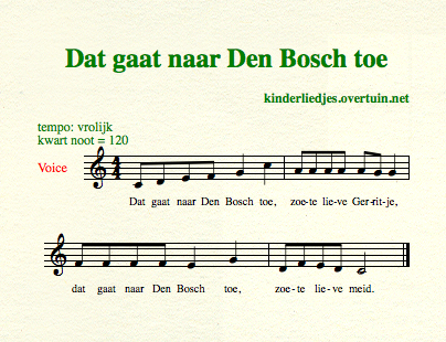 De oorspronkelijke melodie van het kinderlied is te vinden onder 'Dat gaat naar Den Bosch toe' (Volksliedjes).