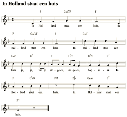Nederlandse kinderliedjes met wijsjes en bladmuziek.