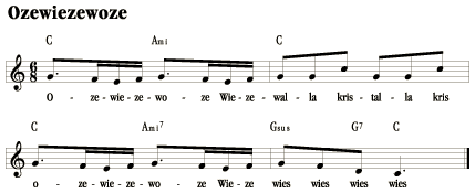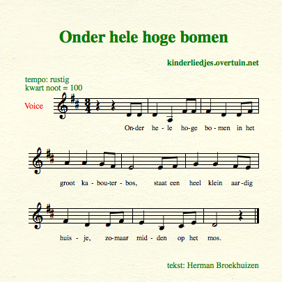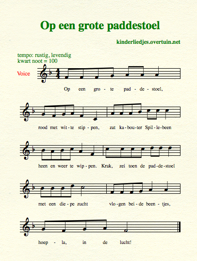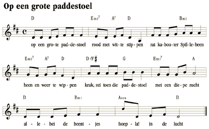 De melodie is gelijk aan het kinderliedje 'Op een grote paddestoel' (liedje hierboven).