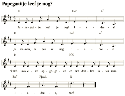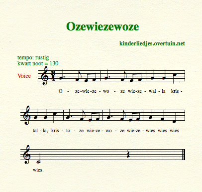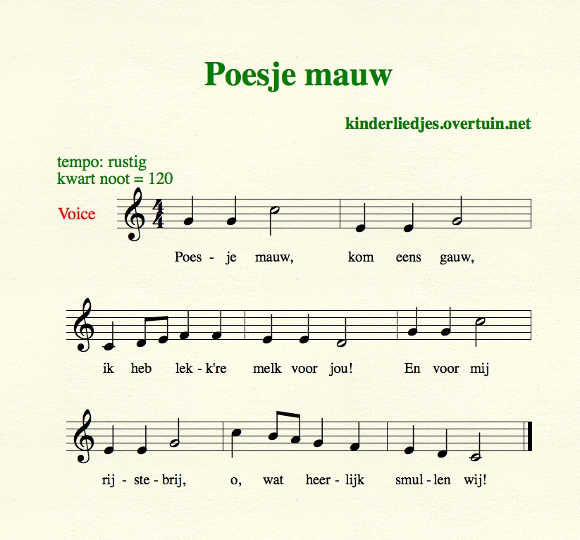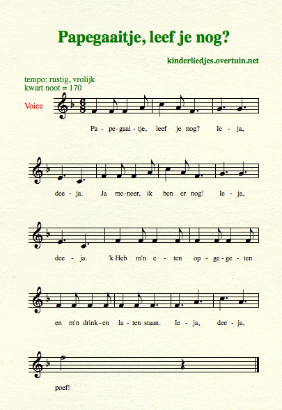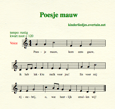 Nederlands kinderliedje met muziek, melodietje, bladmuziek.