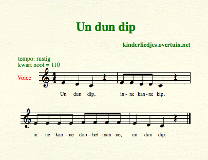 Varianten: olmen koe koe eun deun dip vader jakob boot schip varen muis muisje muisjes muizen veldmuis beukebos fietsen