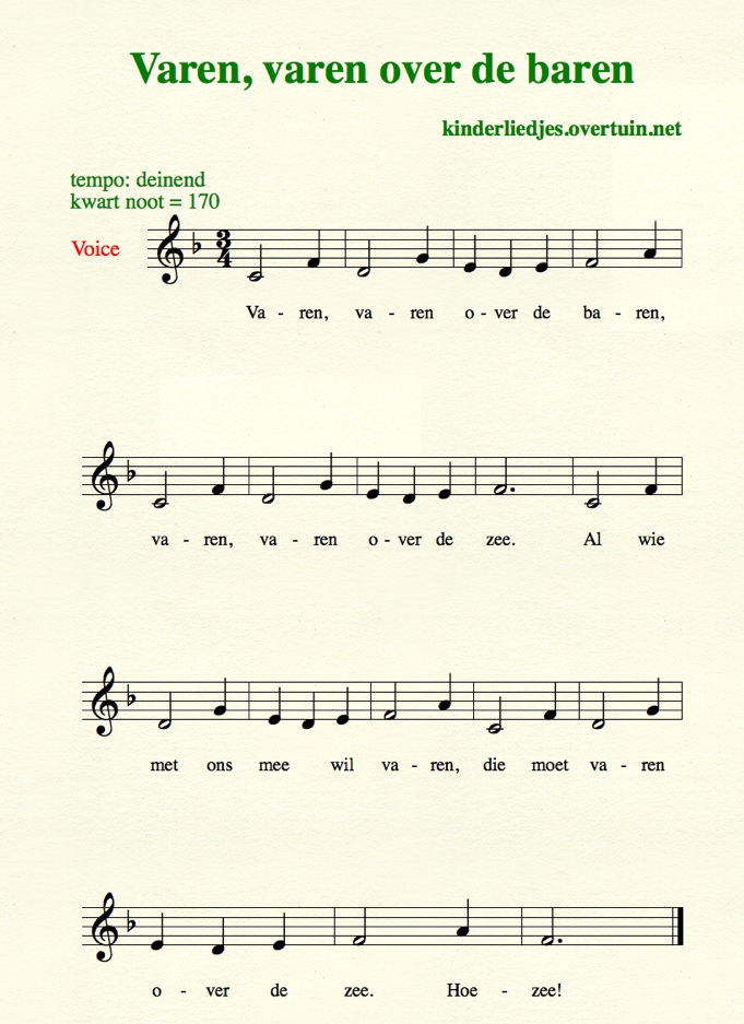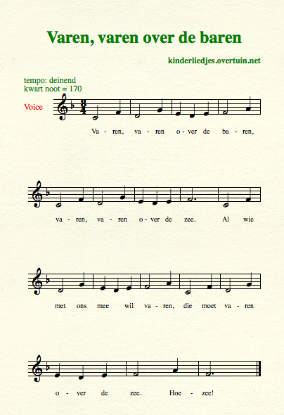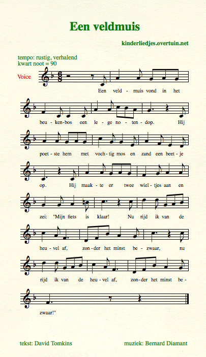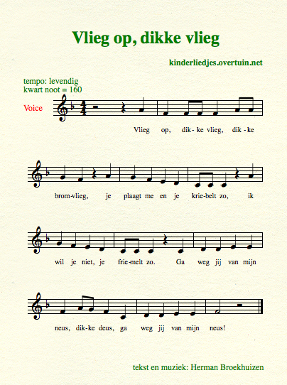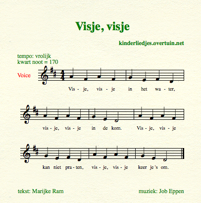 Nederlands kinderliedje met muziek, mp3, midi, bladmuziek.