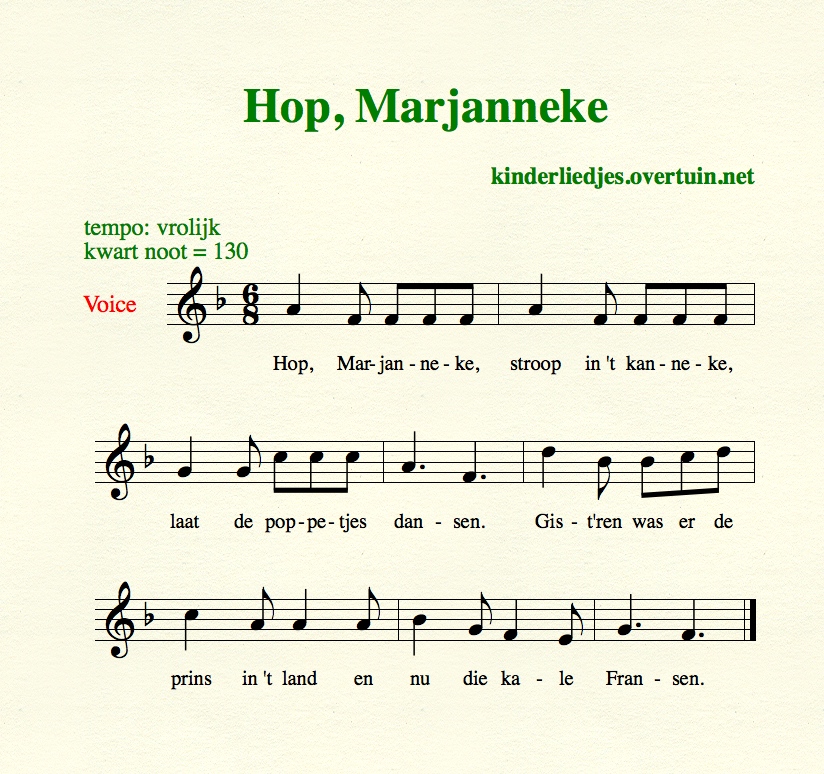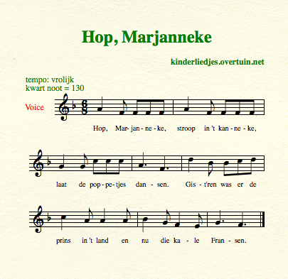 Inhoud website: Kinderliedjeswebsite met 500 nederlandse kinderliedjes: muziek, mp3, midi, bladmuziek, muzieknotatie, melodie, noten, notenschrift, muzieknoten, kinderliedjes luisteren, beluisteren, zingen met kinderen, meezingen, pianomuziek, kinderliedjes downloaden, tekst en muziek, kinderliedjes nl, lied, liedje, liedjes, couplet, refrein, wijs, wijsje traditionele oud hollandse liedjes van vroeger