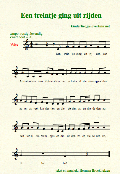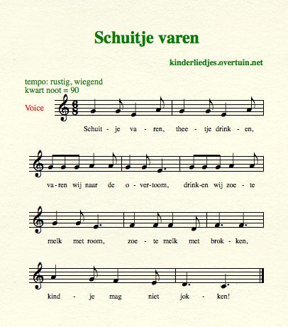 Bekende Nederlandse kinderliedjes met muziek en bladmuziek.