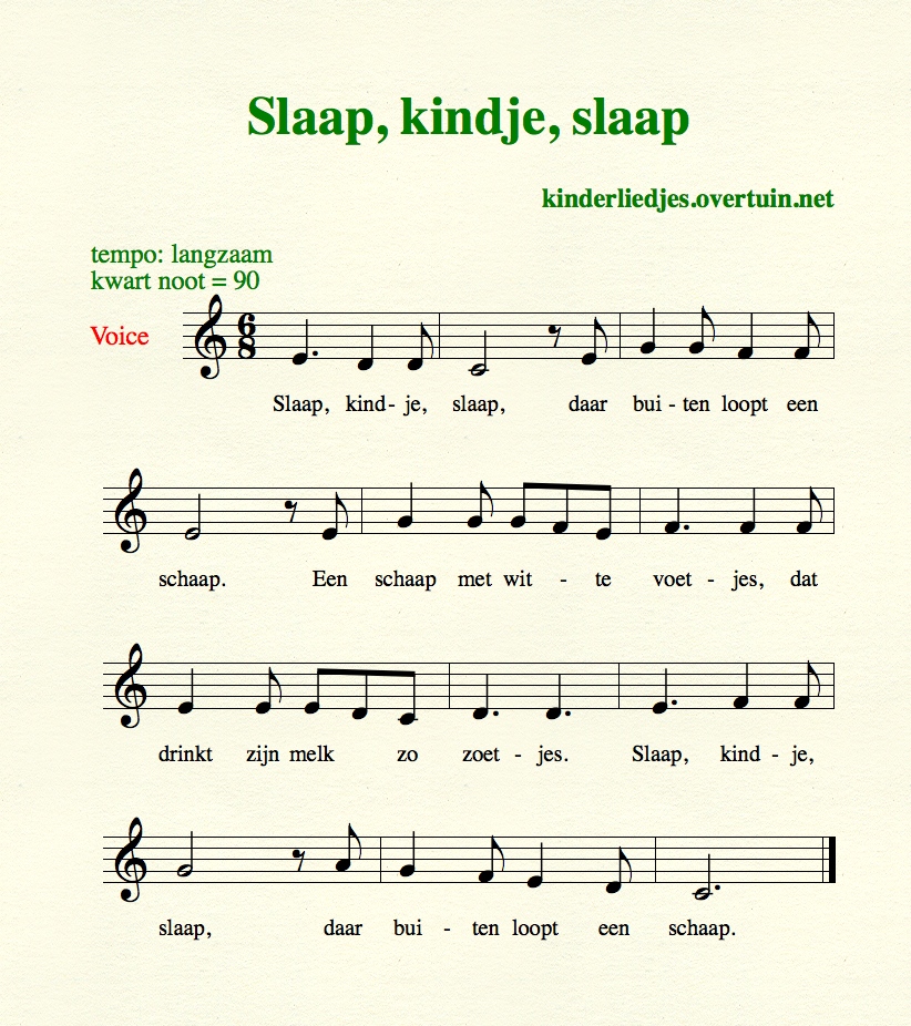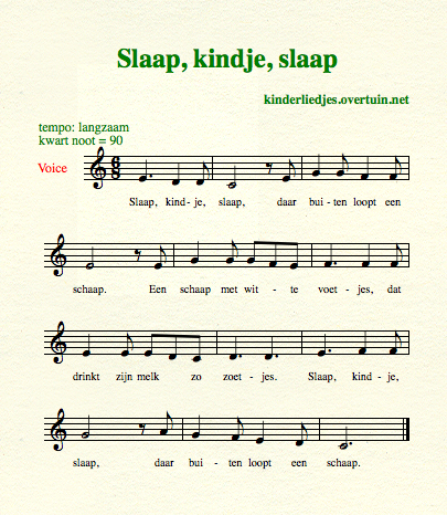 Inhoud pagina: Zingen met baby's, dreumessen, peuters en kleuters - wiegeliedjes, slaapliedjes, babyliedjes, peuterliedjes, kleuterliedjes - liedjes voor baby's peuters kleuters - kinderliedjes voor slapen gaan bedtijd met muziek mp3 - Kinderliedjes met muziek en bladmuziek - Nederlandse kinderliedjes met tekst, teksten, midi en mp3