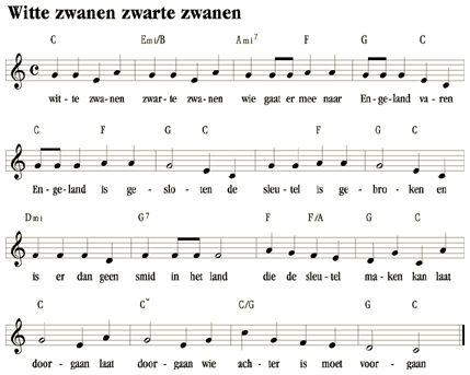 Inhoud pagina: Kringdansjes, kringspelletjes, aftelrijmpjes, overlopertje, touwtjespringen - muziek en bladmuziek - Nederlandse kinderliedjes met tekst, teksten, midi en mp3 - er zat een klein zigeunermeisje, twee boerenkinderen die dansen in de kring, witte zwanen zwarte zwanen, wij zijn rijke, rijke, rijke, marione marionette, marionse marionetten, twee emmertjes water halen, groen is gras, onder mijne voeten, augustijn, heb je wel gehoord van de zevensprong, dansen, eerste was de cococo, split skoebidoe, rivier de rhone, sur le pont d'Avignon, iene miene mutte, schipper, mag ik overvaren, in spin de bocht gaat in, koekoek zeg mij toch, rode bessen lust ik graag, zoek een jongen met beatle-haar, kinderliedje - rijdansen, dansjes - liedjes schoolkinderen lagere school basisschool schoolleeftijd schooltijd