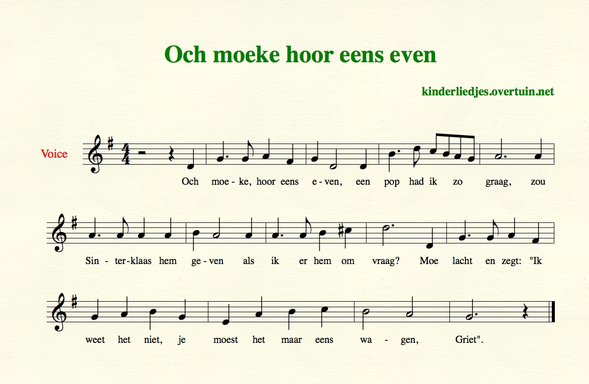 Sinterklaasliedje met muzieknotatie, noten, muzieknoten.
